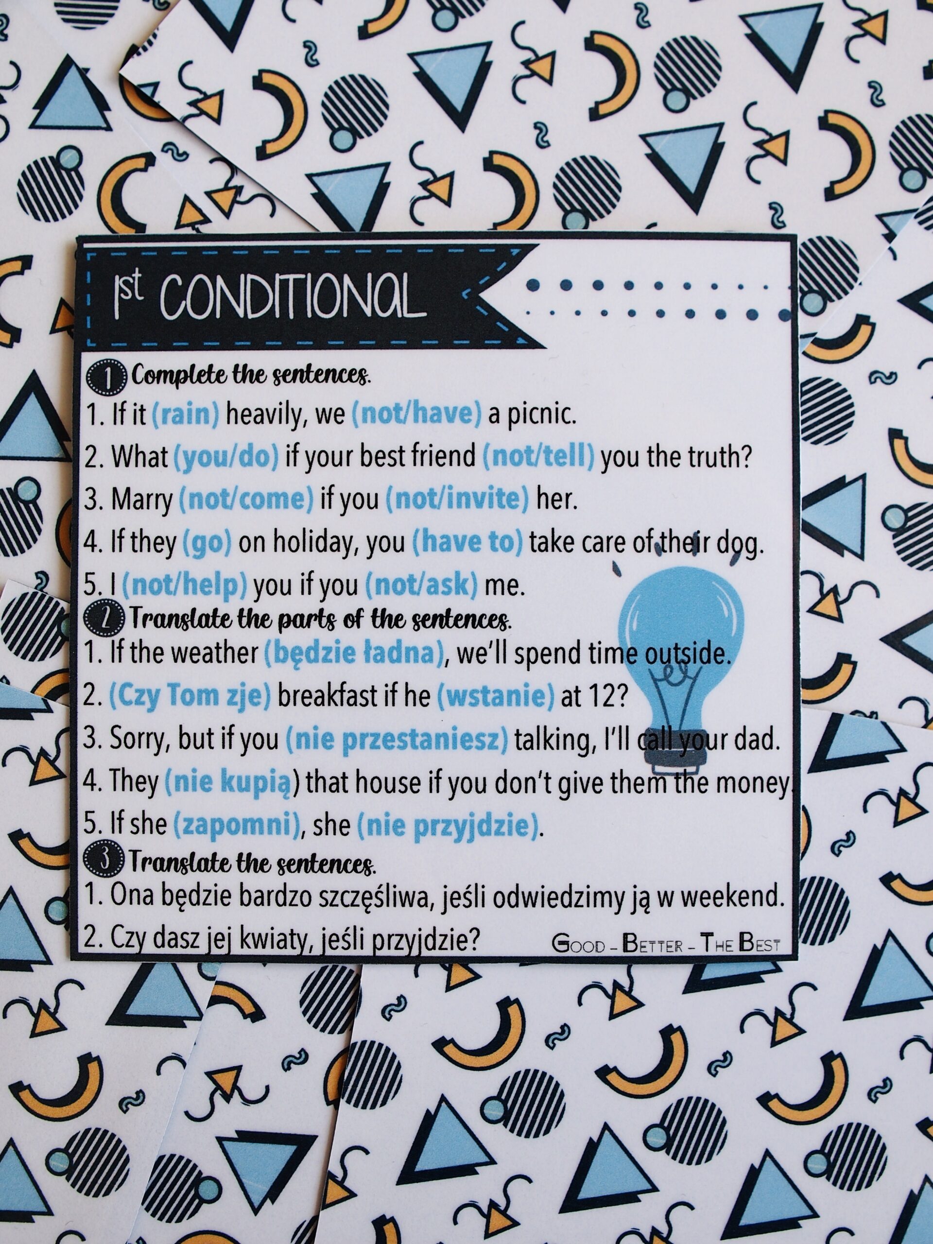Karty oraz ćwiczenia podzielone są na następujące działy gramatyczne:
