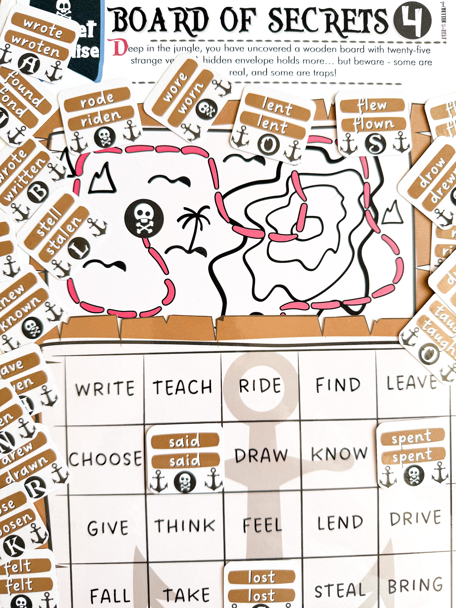 •5 klimatycznych wyzwań językowych: Każda stacja to osobna przygoda – od dopasowywania złotych monet z czasownikami, przez uzupełnianie dziennika kapitana, aż po złamanie szyfru ukrytego w tajemniczych dialogach.